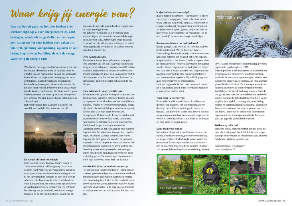 Inhoud: Hoe ik als trainer-coach, met achtergrond in welzijn en re-integratie, oude natuurwijsheden uit sjamanisme en boeddhisme integreerde in een eigentijds jasje.
